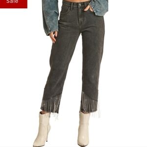 Rock & Roll Denim NWT Dark Wash High Rise Fringe Hem Cropped Straight Leg Wester