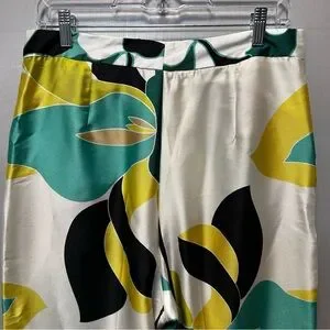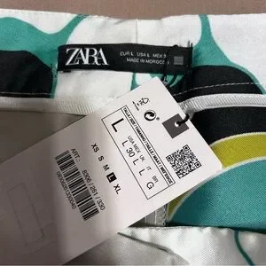 ZARA Womens High Waisted Wide Leg Satin Multicolor Abstract Print Pants SZ L NWT