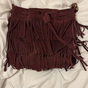 Lucky Brand Burgundy Fringed Suede Bucket Bag With Adjustable Strap