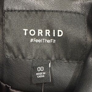 Chic and versatile black leather jacket by Torrid. Features stylish zippers and a sleek design.
