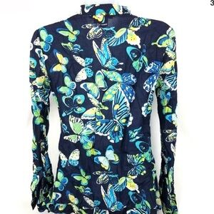 TORY BURCH Stephanie Tunic in Navy Butterfly Print Long Sleeve Top / Tunic