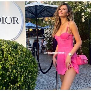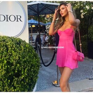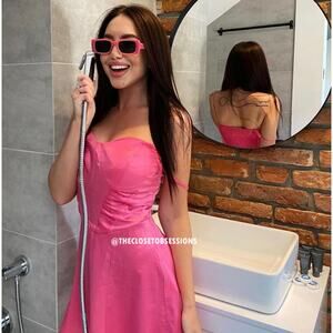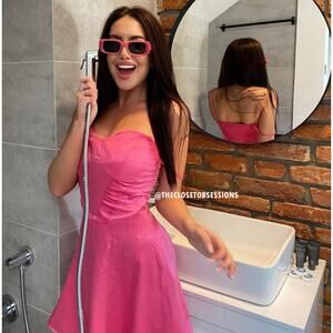 Pink V-neck mini dress with underwire and thin straps with link appliqués. Side hidden in seam zip closure. From ZARA, in size S. New with tags. Sold out in stores.