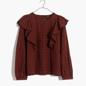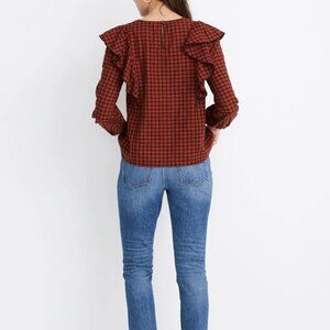 With romantic ruffles cascading down the front, this feminine plaid top is pretty perfect for both family parties and party-parties. We love it tucked into high-rise jeans or an A-line skirt.