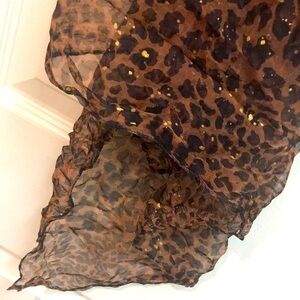 Leopard Print Sheer Scarf with gold accents