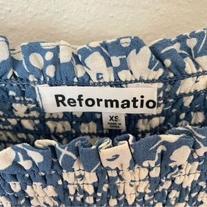 Reformation Sable Smocked Midi Dress in Mari Blue Floral Print Size XS