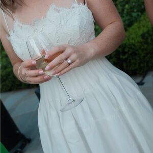 Simkhai elegant white lace dress - worn for engagement party once then immediately dry cleaned. Sinches your waist in for a snatched look, compliments all night long! Would love to find another home.