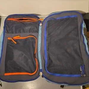 Allpa 28L baby blue color travel backpack Tons of room to pack, side zipper for a 13" laptop, easy access front pocket, TSA Compliant, Water-resistant TPU coating.