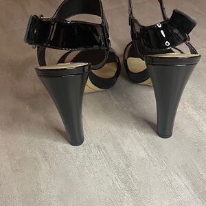 High heel patent strappy sandal shoe, like new , clean interior and no flays on the patent, adjustable ankle strap, 4.5" heel