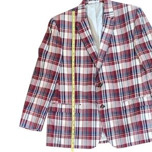 CHAPS Mens 44R Plaid Sport Coat Blazer Red Cream Blue 100% Cotton NWOT