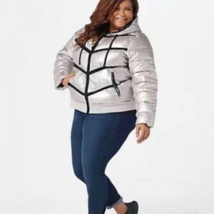 Zuda Women's Quilted Pearlized Puffer Hoodie Jacket Silver M