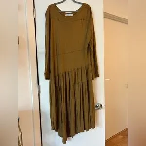 Free People Beach Tan Jilly Drop Waist Long Sleeve Asymmetric Hem Midi Dress