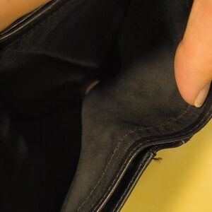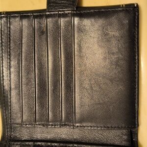 This is a ladies vintage Coach wallet. It is black with silver hardware. The coin holder area is very clean as you can see from the pictures. No wear on corners. Plenty of slots for cards and ID's. The leather has some indentions from use but no scratches or scuffs.
