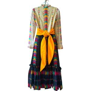 VINTAGE 70's Deadstock Hippie Flower Power Haight-Ashbury Style Midi Dress Sz S