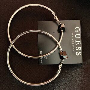 These Guess Silver Hoop Earrings are a stylish accessory that feature a classic hoop design in a sleek silver color. These earrings are versatile and suitable for various occasions. The Guess brand ensures quality and fashion-forward style, making these earrings a must-have for any jewelry collection.