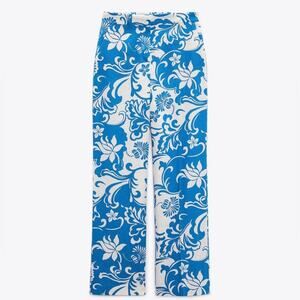 Zara PRINTED LINEN BLEND TROUSERS Size Extra Large XL