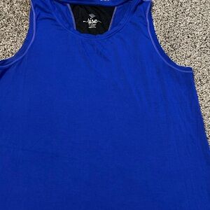 Comfortable dri fit dark gray tank top by tek gear. Ideal for workouts. Size 1x. Lularoe royal blue tank top is next with black mesh panel on the back. Very comfy cotton top. Size Large, lularoe fitting is strange so large fits more like 1x
