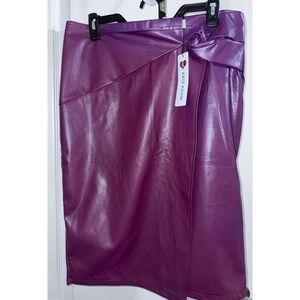 Stylish purple faux leather skirt by Kate Kasin. Perfect for the office, date night, or drinks with the girls.