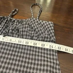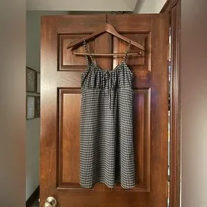 Stylish checkered dress. Features adjustable spaghetti straps. Perfect for casual outings. Excellent preowned condition! (CS412)