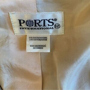 Ah, Ports International. Such a good quality brand. This blazer is in perfect condition. Cream coloured with a texture in the material. Lined. No flaws. Perfect for the office.