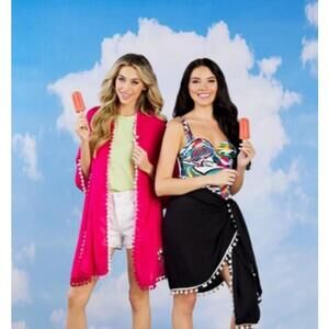Mud Pie pink pom pom sarong beach cover up