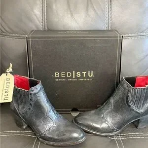 BED|STÜ Brie II ankle boots-Black Rustic•Red lining• Sz 9.5•NWOB