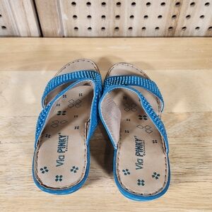 Via Pinky Rhinestone Slides Wedge Sandals Blue Sparkle Summer Shoes