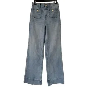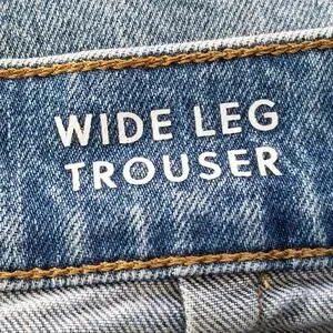 Stylish wide leg jeans. Light blue denim. Flare design. Perfect for casual wear.