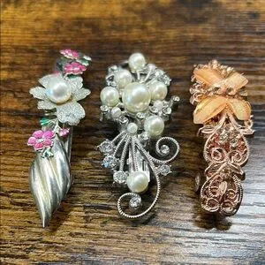 Set of 3 Vintage Y2K Elegant Barrette Hair Clips | Retro Glam Coquette Style