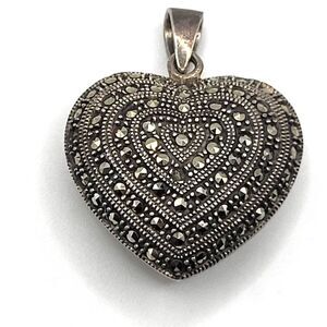 Vintage 40s Marcasite Heart Pendant Marked A 925 1.25 in
