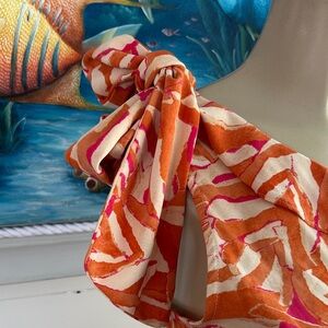 Stylish one-shoulder blouse. Features vibrant orange and pink abstract pattern. Perfect for casual outings, beach, summer party. Preloved in perfect condition. Size Large. Silk blend