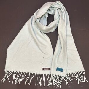 Rehab elegant Coach Cashmere light mint colored scarf with fringe. Small area with holes/wear, as shown. Perfect for any outfit especially in the winter.🧣Measures 12" x 66"
