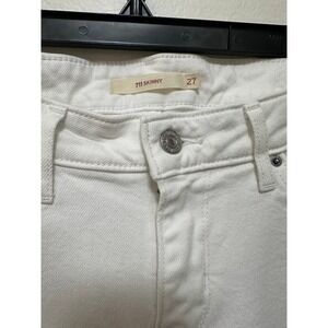Keywords: Levi's, 711 Skinny, White jeans, Women's jeans, Distressed jeans, Denim, Size 27, Casual, Contemporary, Fashion, Stylish, Ripped jeans