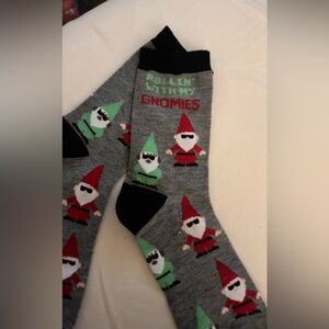 Brand New Gnome Holiday Print Gray Socks