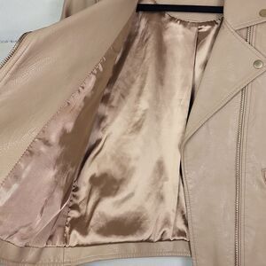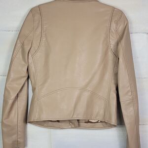 Blank NYC Tan faux Leather Moto Jacket Asymmetrical Zipper. Size S