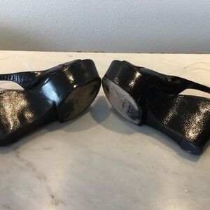 SERGIO ROSSI PLATFORM BLACK PATENT LEATHER SANDALS SZ 38