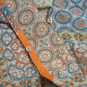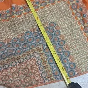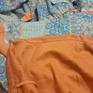 This elegant two layer maxi dress features a stunning multicolor pattern with orange accents. Perfect for any occasion, it offers a flattering fit and stylish design.