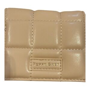 Stylish quilted wallet in tan. Features a sleek design by Poppy Grey.