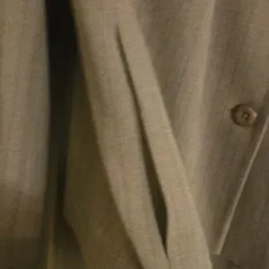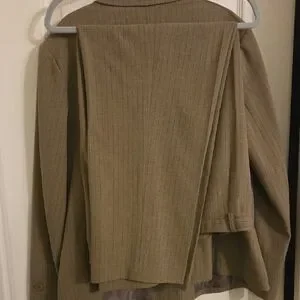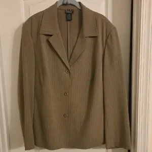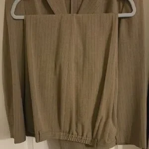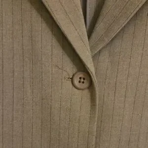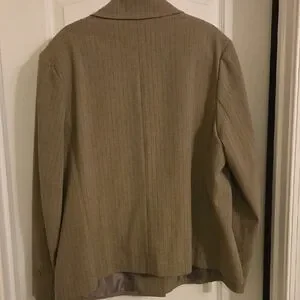 Good used condition, nice neutral tone goes well with brown shoes or boots, slip pockets on jacket none on pants. Very flattering, nice weight to fabric. Can be worn with or without top underneath due to design.