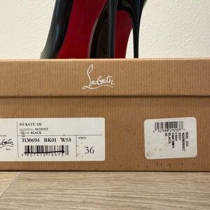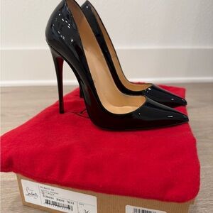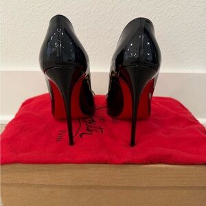 Authentic Christian Louboutin black patent leather heels with a glossy finish. Comes with original box and dust bag. New and never worn except indoors to try on. Louboutins run small and these were too small on me. There is a small white scuff on the bottom of one shoe but other than that these are in like-new condition. Accepting offers!