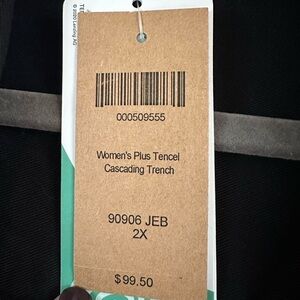 Women's plus size Cascading Tencel Trench jacket 2X Black NWT Safari Gorpcore