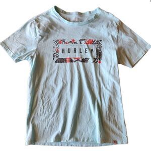Hurley men's small sky blue crew neck tee shirt short sleeve graphic floral prin