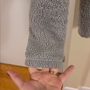 Soft gray fleece with cozy texture. Ideal for warmth and comfort. No pockets. One owner (me) - smoke free home.