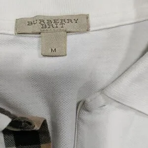 Burberry Brit White Embroidered Logo Plaid Details Placket Polo Shirt Men's M, Minor signs of wear on back