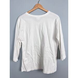 A bold and playful piece of wearable art, this t-shirt from Marushka features a hand-printed design, a hallmark of the brand's unique style. The vibrant lime green and pink alligator graphic makes a fun and funky statement. Crafted from soft 100% cotton with a comfortable V-neck and 3/4 sleeves, this top is perfect for an artsy, coastal, or Florida-inspired look.