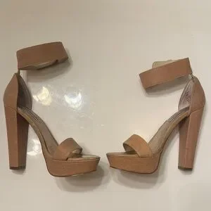 Stylish tan platform heels. Ideal for a sophisticated look. Good used condition. Wear and tear in pictures.