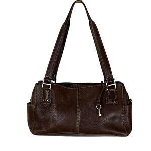 Fossil Y2K Brown Pebbled Leather Double Handle Shoulder Bag & Wallet Set