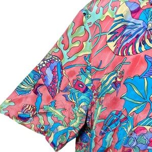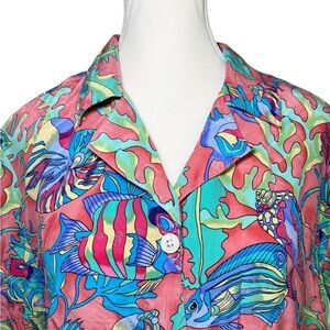 Ann May Silk Vintage Colorful Fish Print Button-Up Shirt