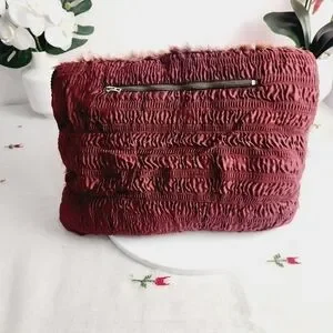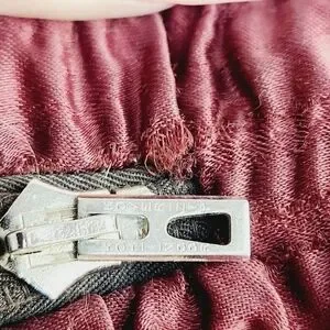 burgundy rayon satin lining with ruffled, gathered openings on each end