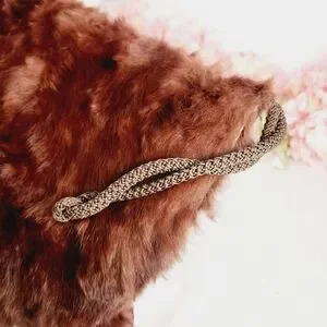 Brown crochet cord wrist strap on one end with adjustable toggle