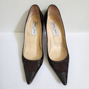 Jimmy Choo Brown Suede and Patent Leather Heels